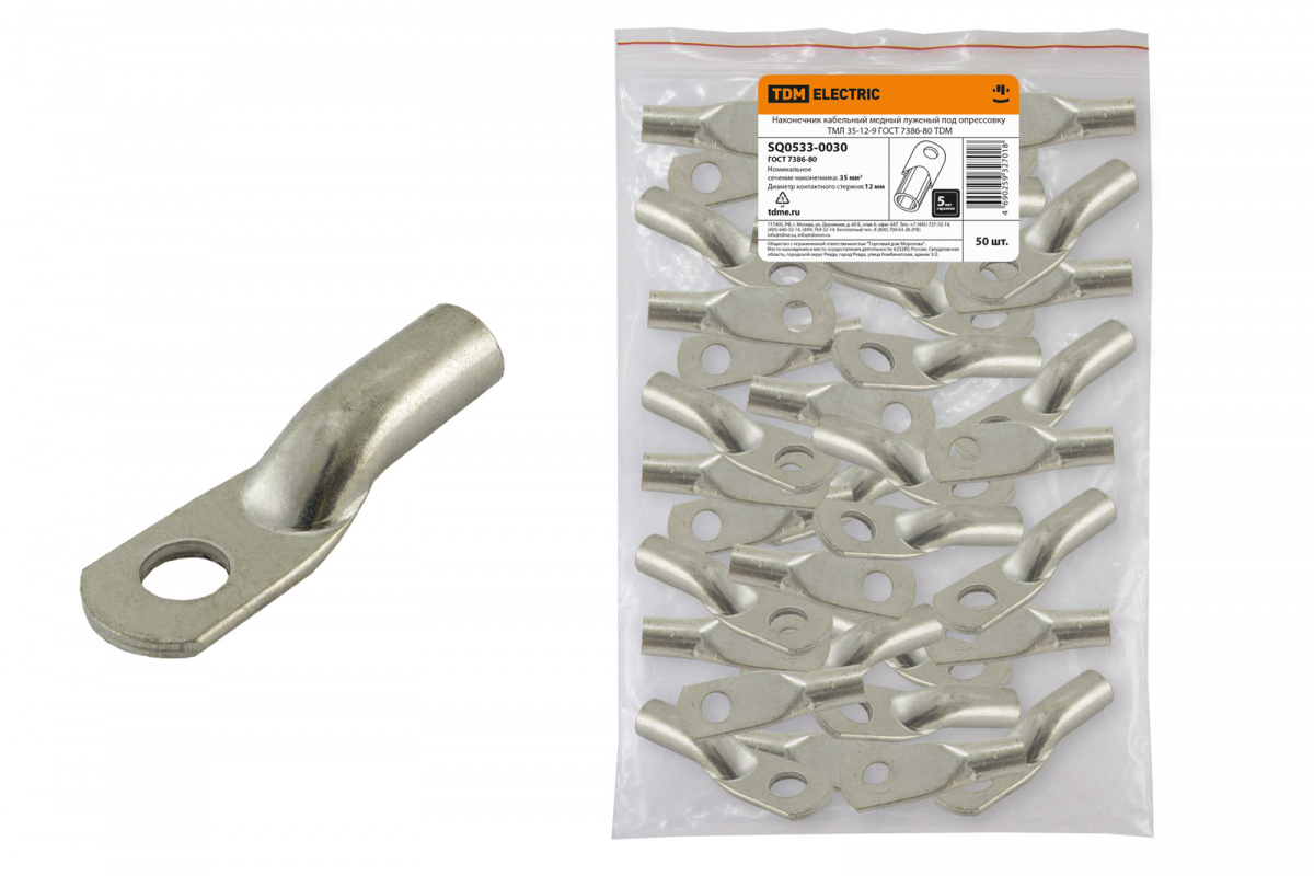 - Наконечник медный луженый ТМЛ 35-12-9 ГОСТ 7386-80 TDM (1/50/500) (SQ0533-0030)
