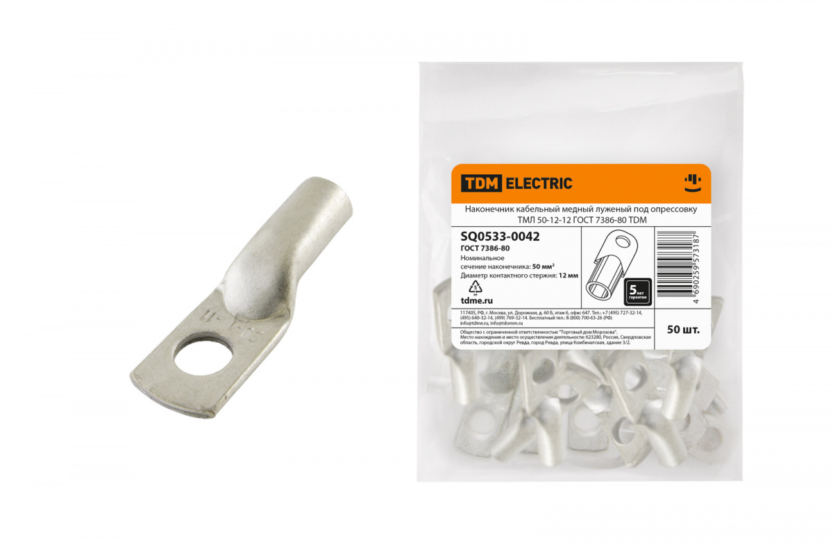 - Наконечник медный луженый ТМЛ 50-12-12 ГОСТ 7386-80 TDM (1/50/400) (SQ0533-0042)
