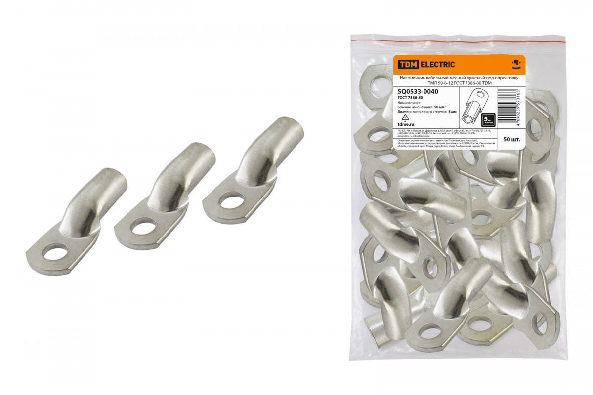 - Наконечник медный луженый ТМЛ 50-8-12 ГОСТ 7386-80 TDM (1/50/400) (SQ0533-0040)