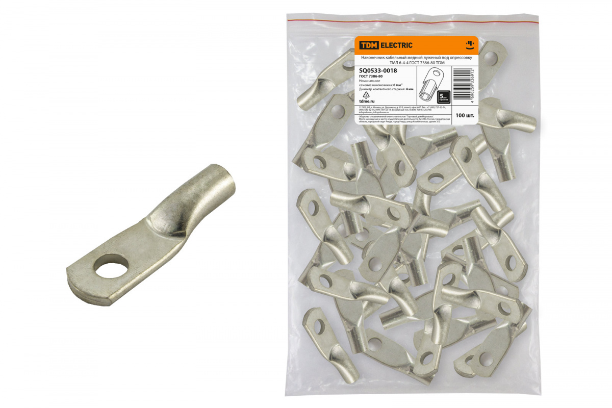 - Наконечник медный луженый ТМЛ 6-4-4 ГОСТ 7386-80 TDM (1/100/3500) (SQ0533-0018)