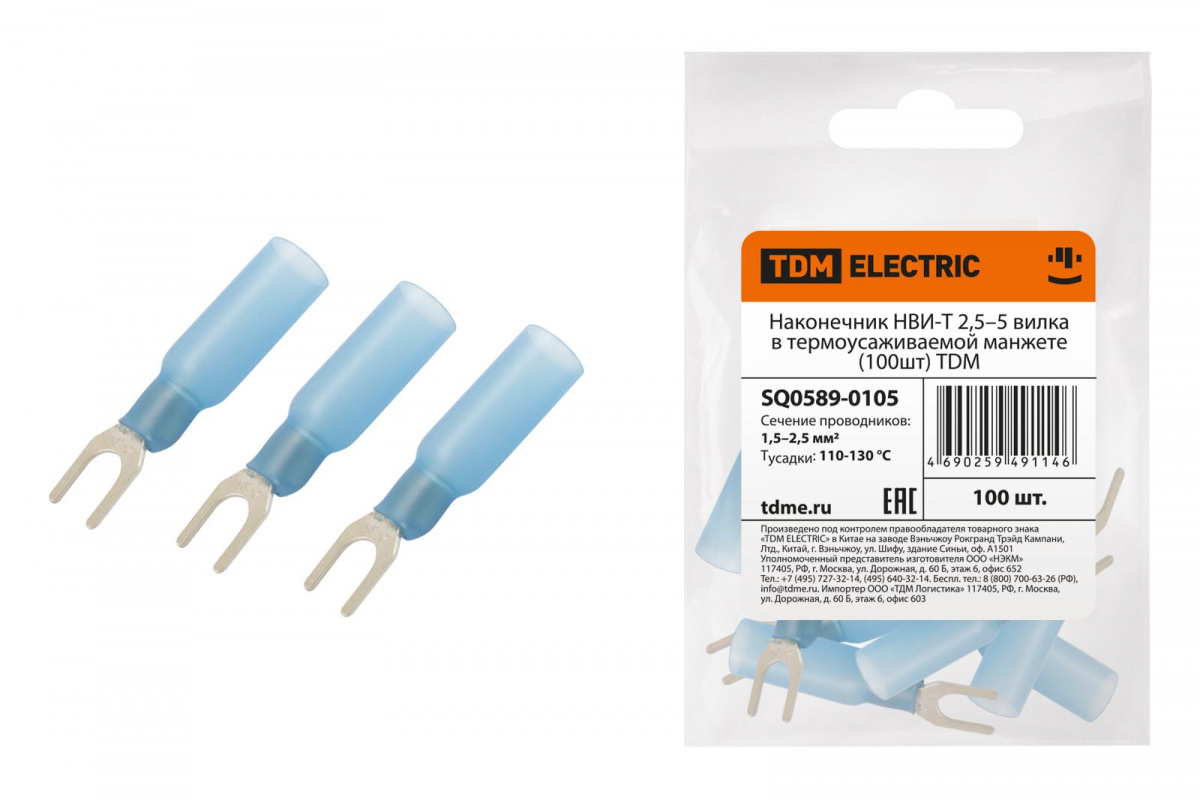 - Наконечник НВИ-Т 2,5–5 вилка в термоусаживаемой манжете (100шт) TDM (1/100) (SQ0589-0105)