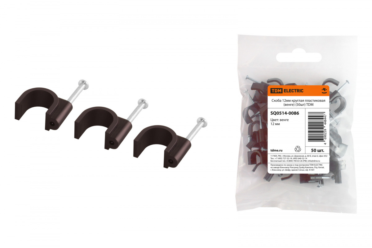 - Скоба 12мм круглая пластиковая (венге) (50шт) TDM (1/200) (SQ0514-0086)