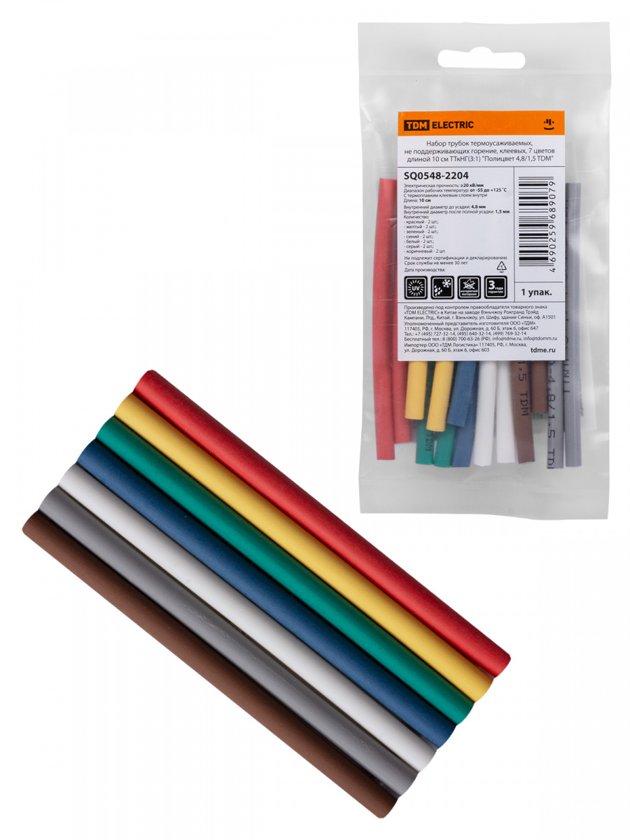 - Набор трубок термоусаживаемых, клеевых, 7 цветов, длиной 10см, ТТкНГ(3:1) "Полицвет 4,8/1,5 TDM" (1/75) (SQ0548-2204)