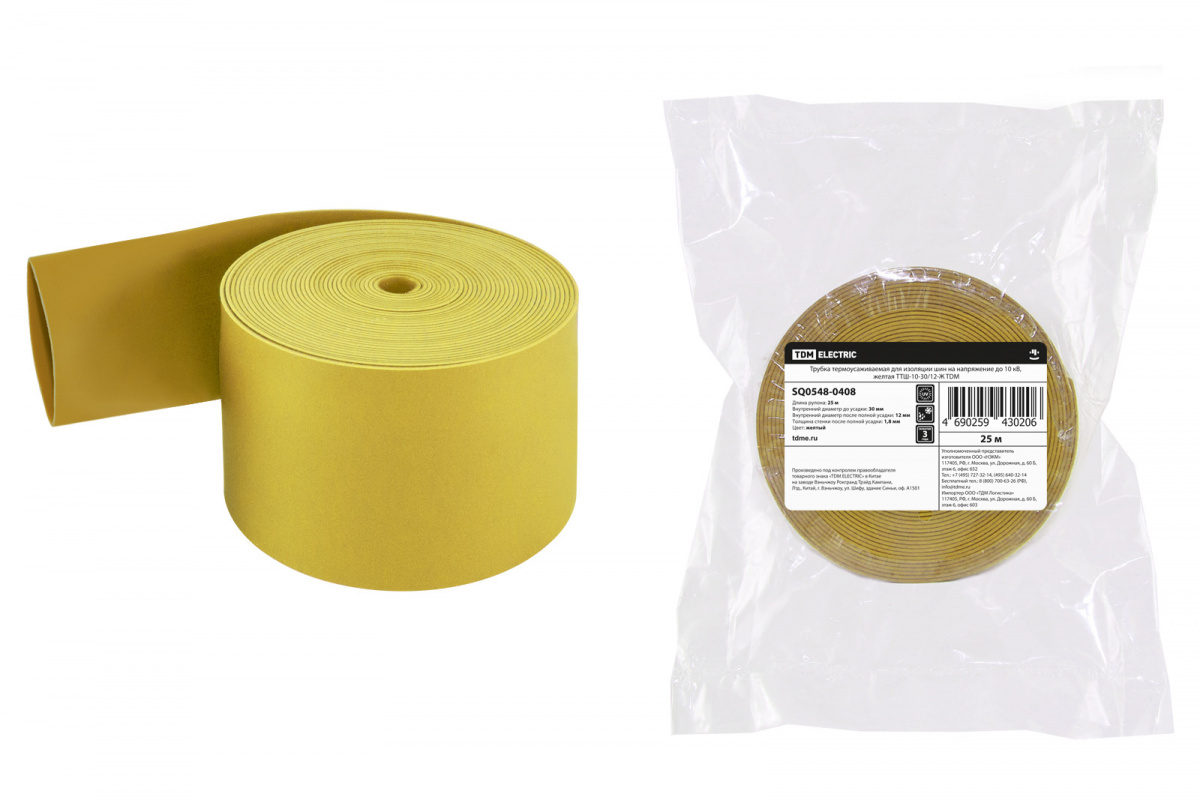 - Трубка термоусаживаемая TDM для изоляции шин ТТШ-10-30/12-Ж (25/25/75) (SQ0548-0408)