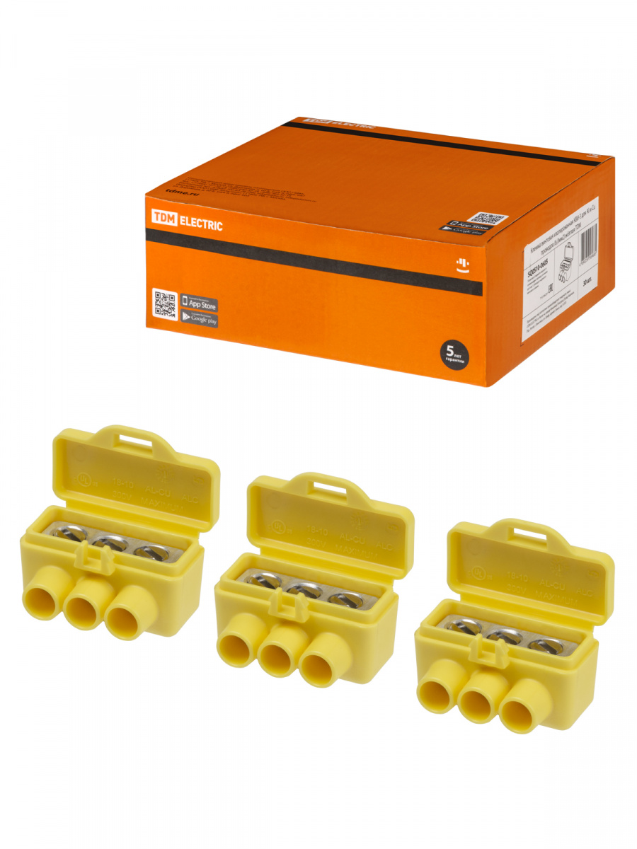 - Клемма винтовая изолированная КВИ-3 для Al и Cu проводов (6,0мм2) желтая TDM (30/720) (SQ0510-0605)