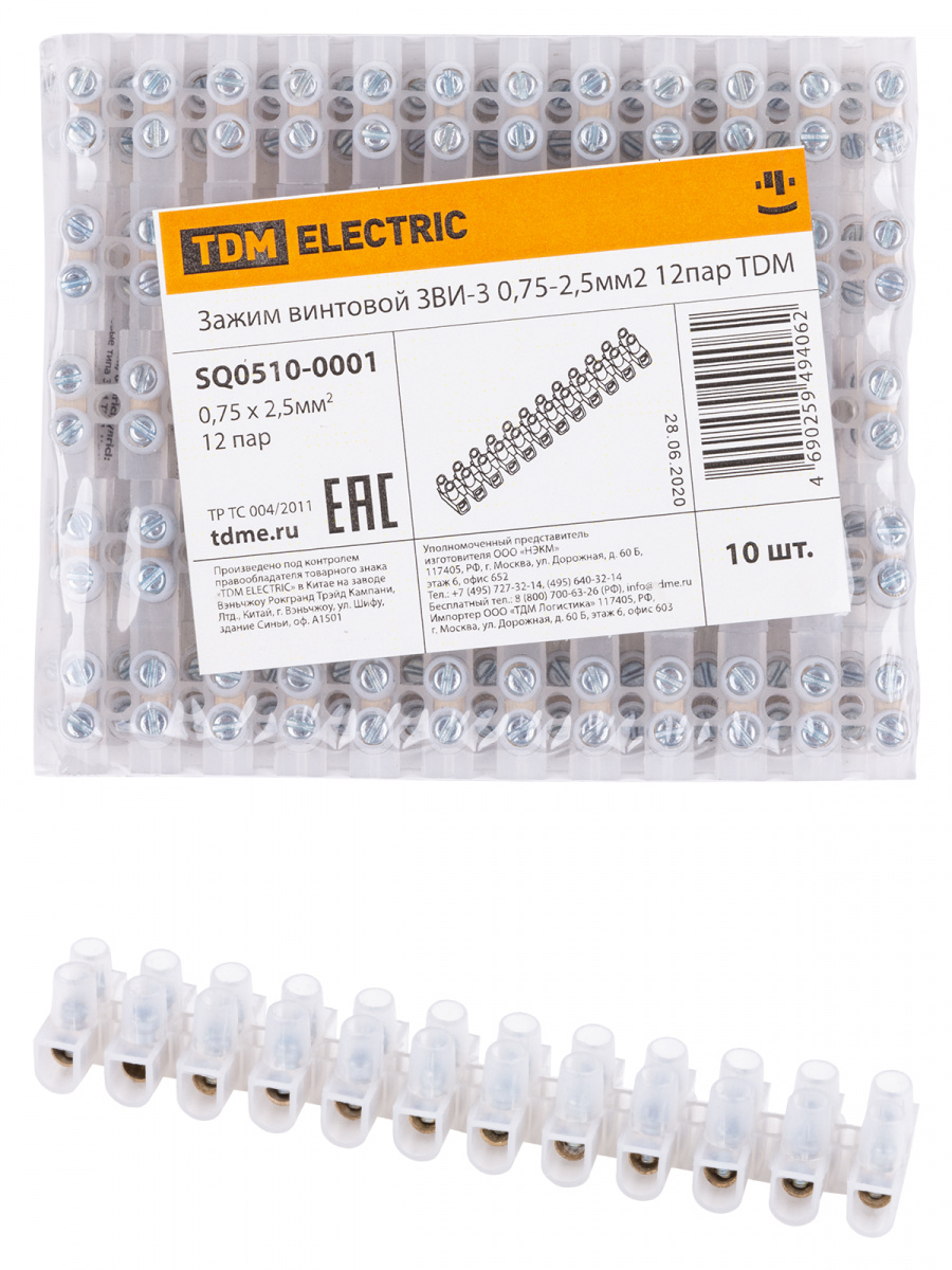 - Зажим винтовой ЗВИ-3 0,75-2,5мм2 12пар TDM (10/500) (SQ0510-0001)