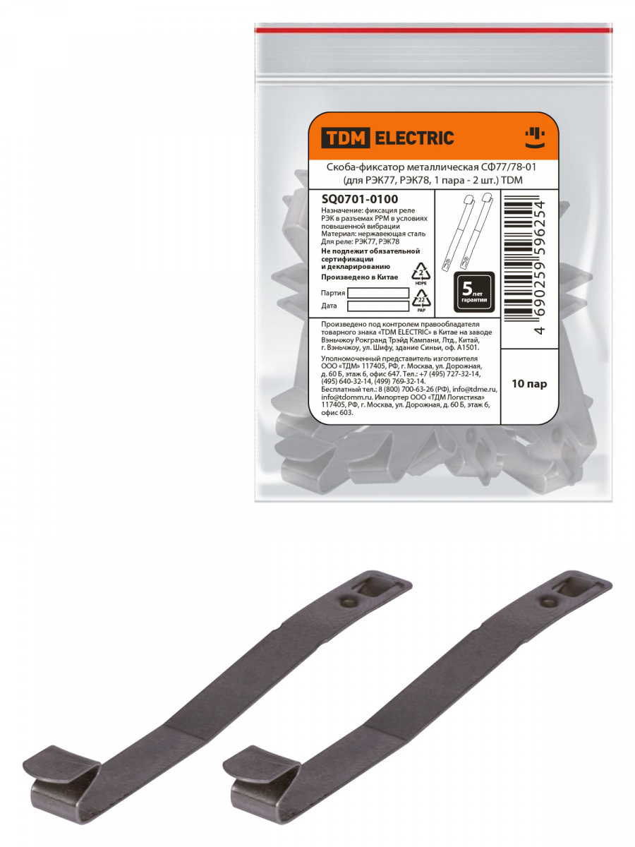 - Скоба-фиксатор металлическая СФ77/78-01 (для РЭК77, РЭК78, 1 пара - 2 шт.) TDM (1/100/5000) (SQ0701-0100)