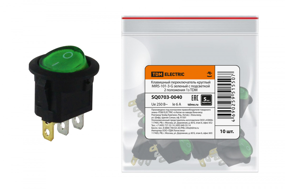 - Клавишный переключатель круглый MIRS-101-3-G зеленый с подсветкой 2 положения 1з TDM (1/10/2000) (SQ0703-0040)