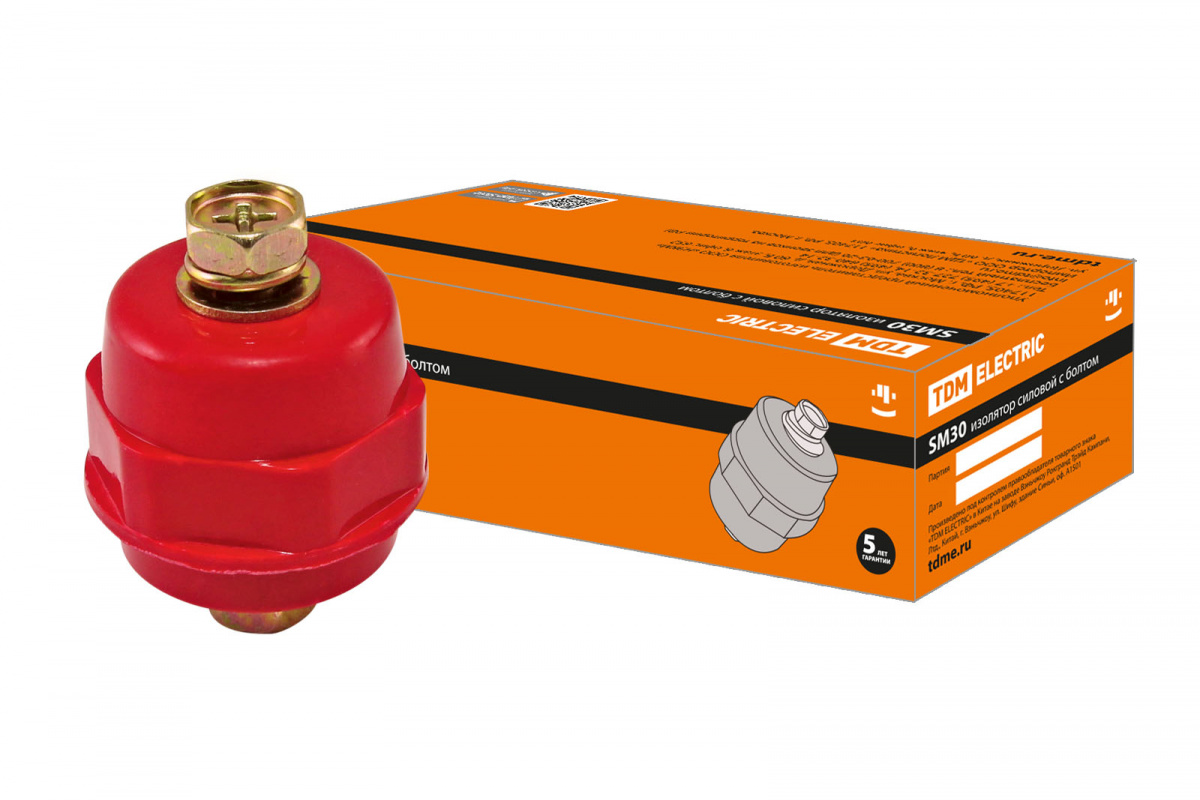 - Изолятор SM30 силовой Н30хD27хМ8мм с болтом TDM (1/10/280) (SQ0807-0056)