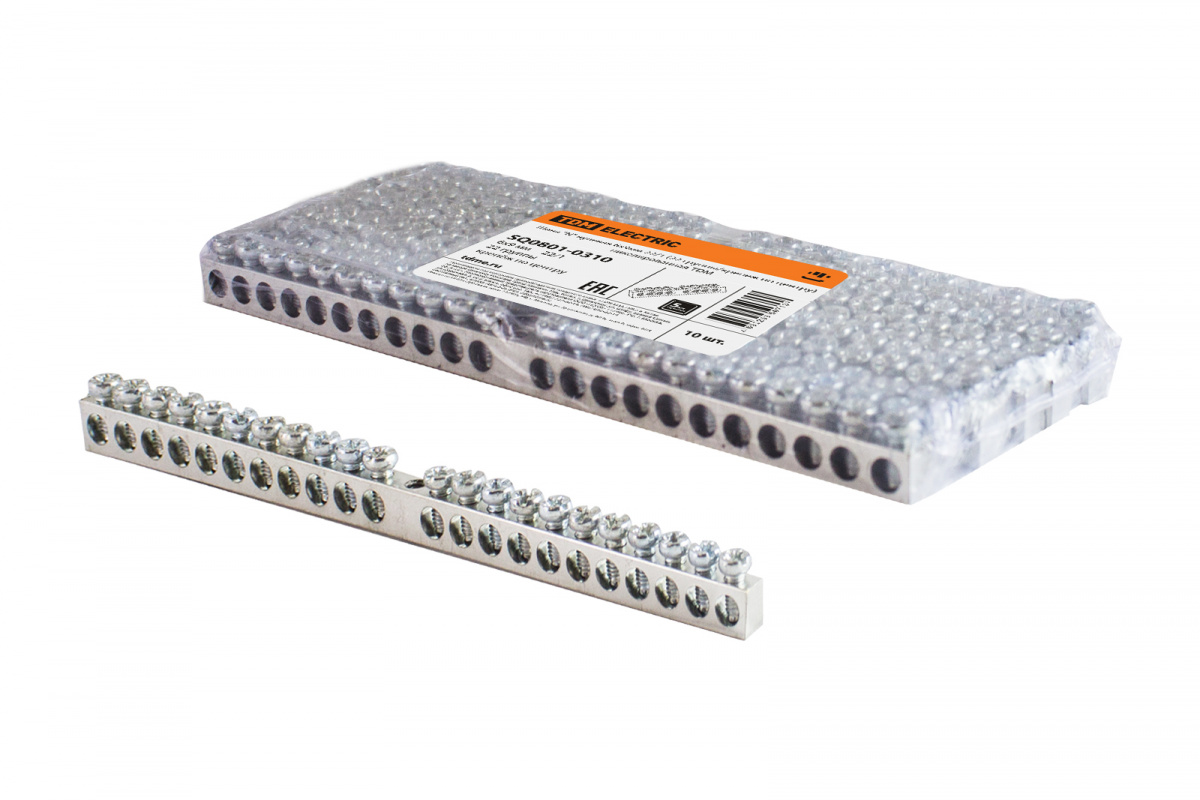- Шина "N" нулевая 6х9мм 22/1 (22 группы/крепеж по центру) никелированная TDM (1/10/220) (SQ0801-0310)