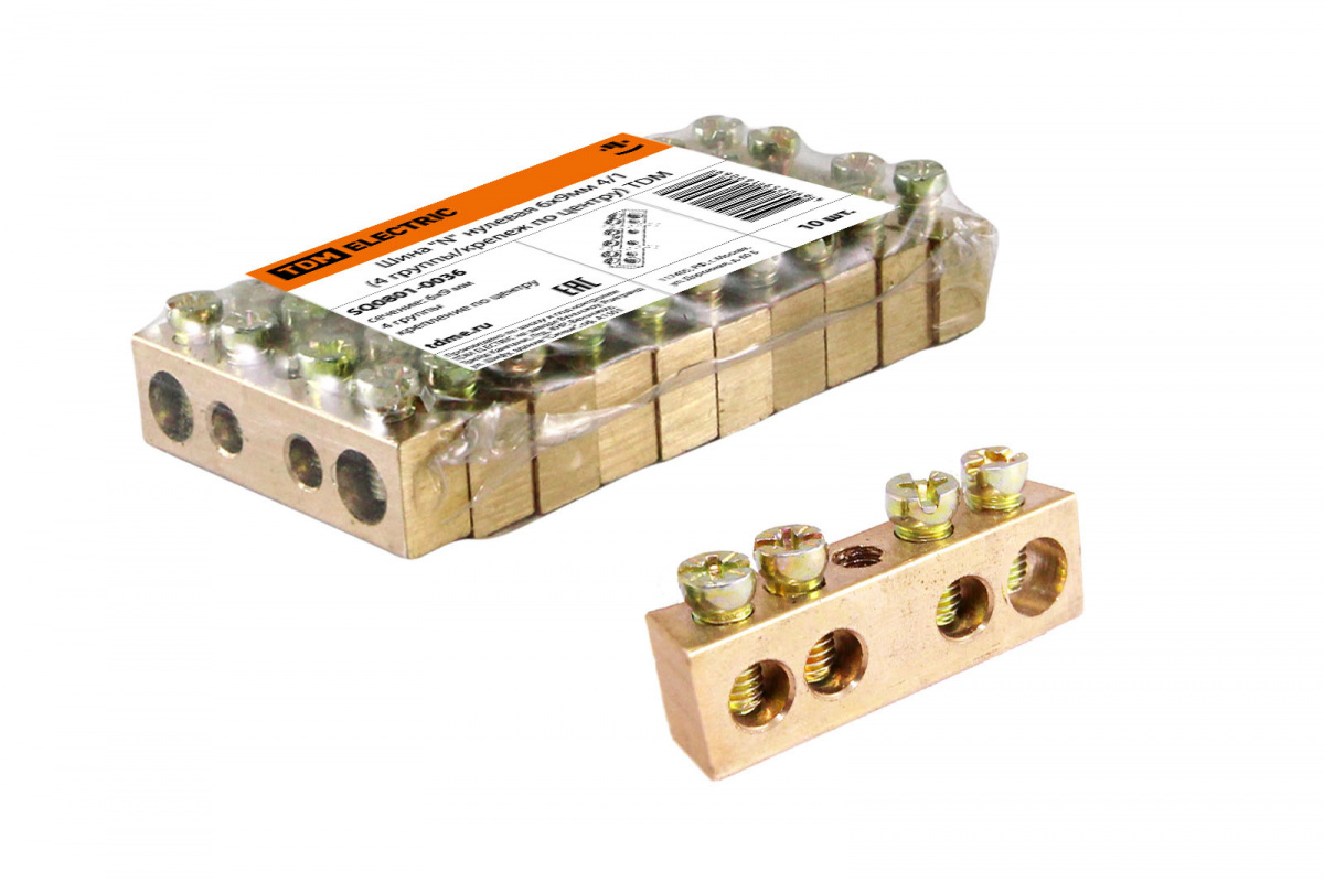- Шина "N" нулевая 6х9мм 4/1 (4 группы/крепеж по центру) TDM (10/960) (SQ0801-0036)