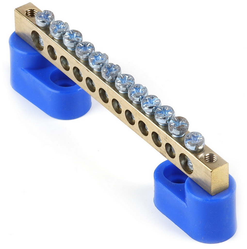 - Шина "N" нулевая (латунь) SMARTBUY 6х9мм на двух угл. изоляторах 12 групп (1/500) (SBE-bc-12-2i)