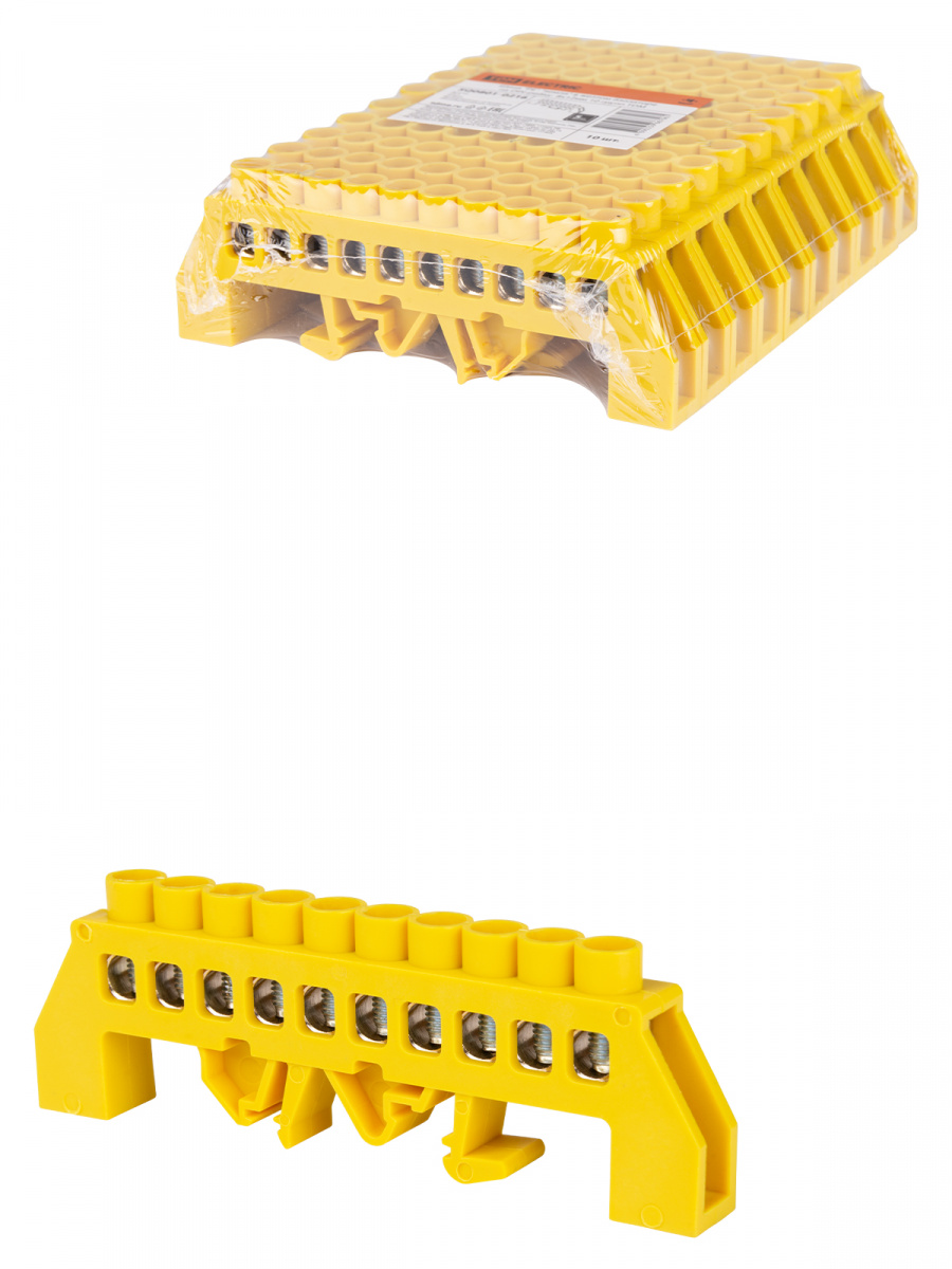- Шина "PE" "земля" в желтом изоляторе на DIN-рейку 8x12мм 10 групп TDM (1/10/250) (SQ0801-0216)