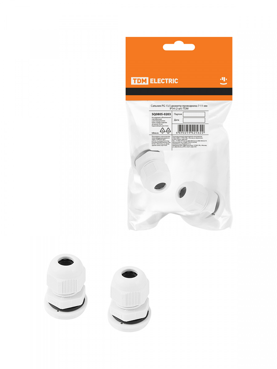 - Сальник PG 13,5 IP54 в инд. упак. по 2 шт. TDM (1/1/1000) (SQ0805-0203)