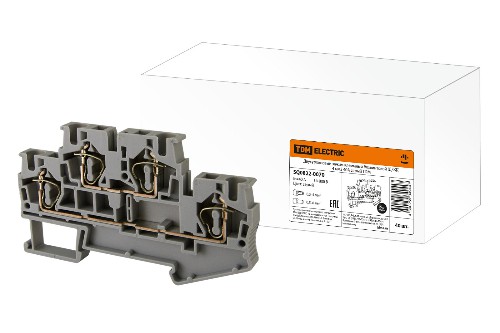 - Двухуровневый зажим клеммный безвинтовой (ДЗКБ) 4 мм2 40А серый TDM (SQ0822-0070)