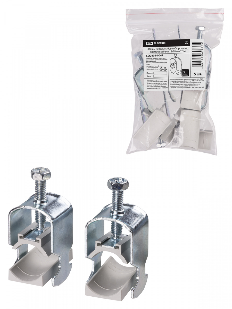 - Зажим кабельный для С-профиля, диаметр кабеля 12-18 мм TDM (5/300) (SQ0804-0041)