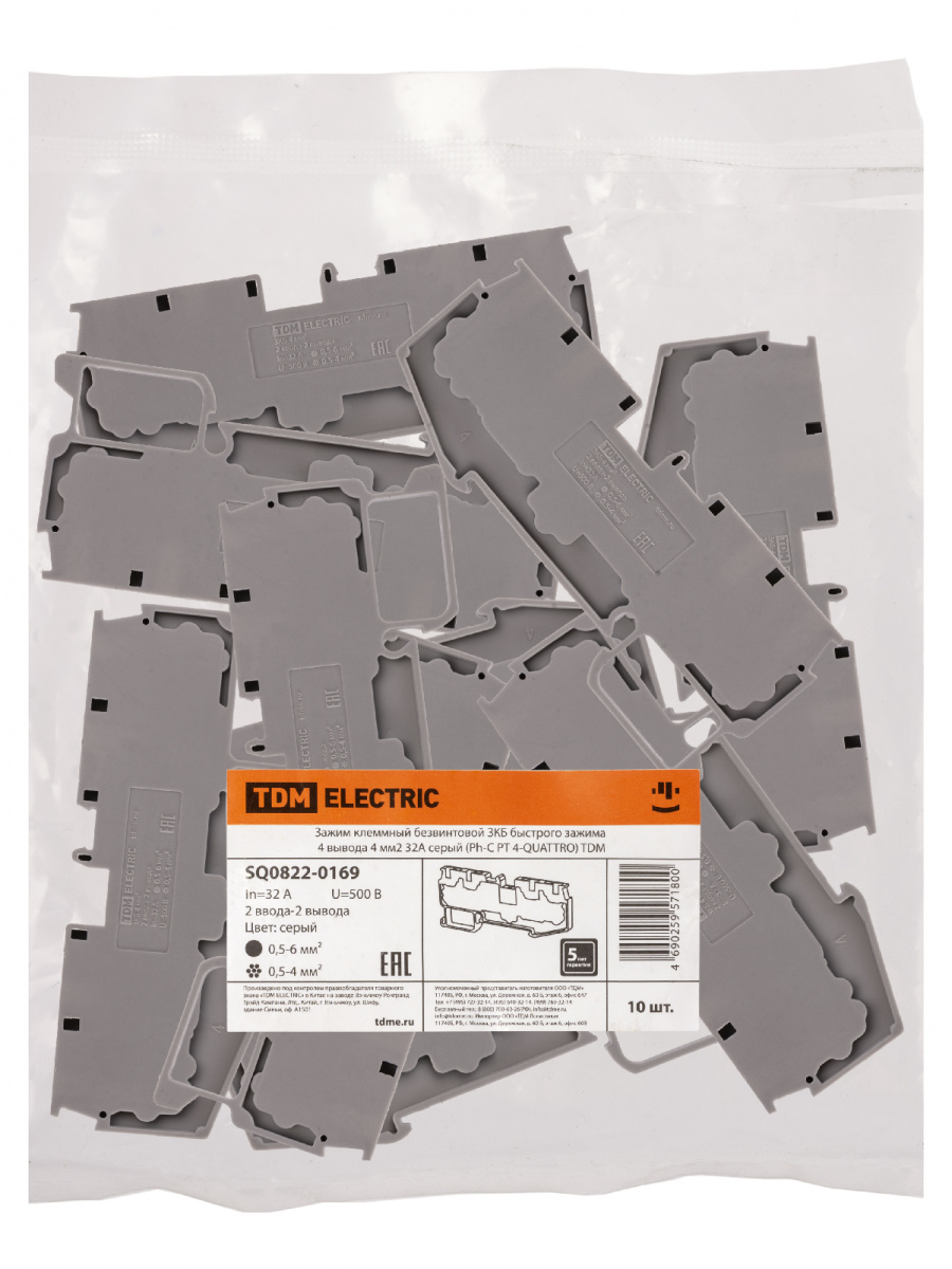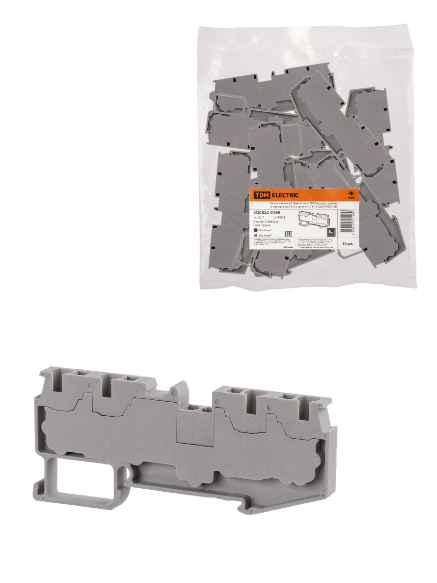- Зажим клеммный безвинтовой ЗКБ быстрого зажима 4 вывода 4 мм2 32А серый (Ph-C PT 4-QUATTRO) TDM (10/300) (SQ0822-0169)