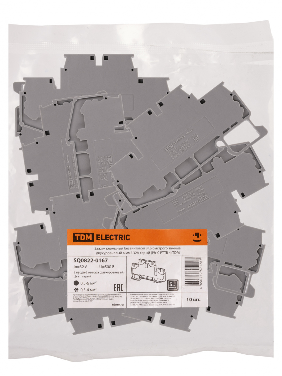 - Зажим клеммный безвинтовой ЗКБ быстрого зажима двухуровневый 4 мм2 32А серый (Ph-C PTTB 4) TDM (10/320) (SQ0822-0167)