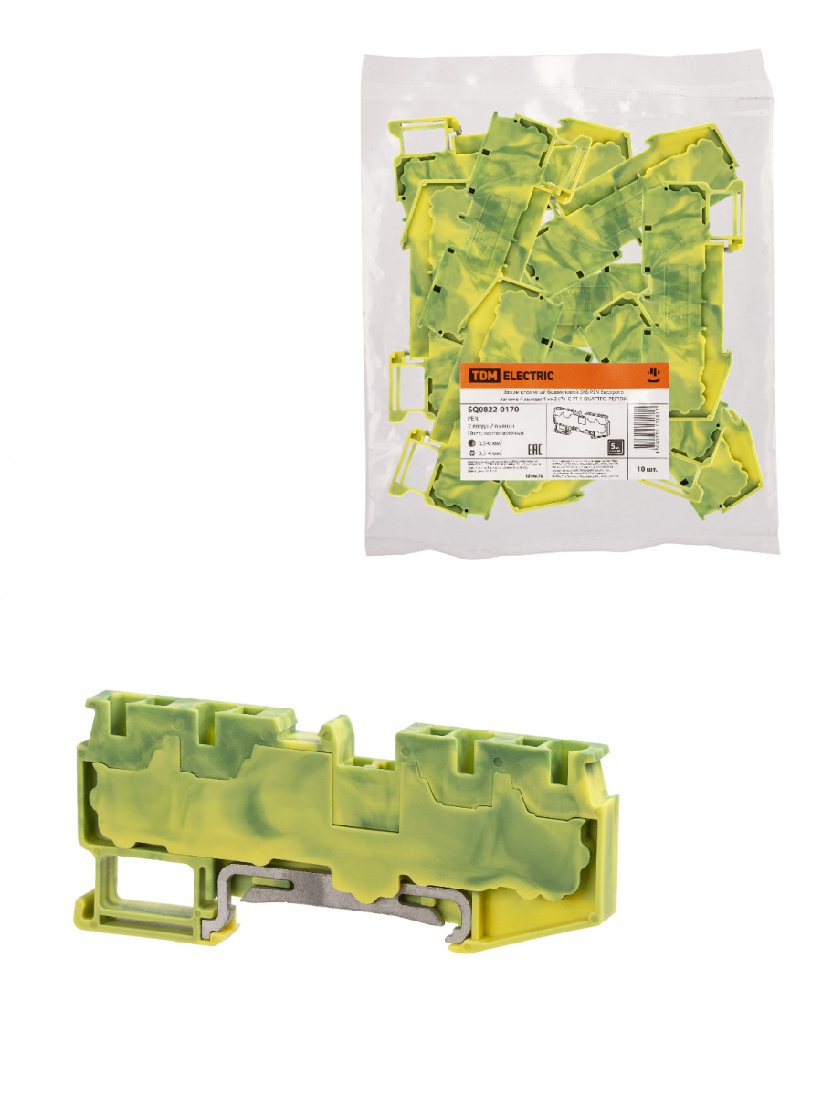 - Зажим клеммный безвинтовой ЗКБ PEN быстрого зажима 4 вывода 4 мм2 (Ph-C PT 4-Q-PE) TDM (10/300) (SQ0822-0170)