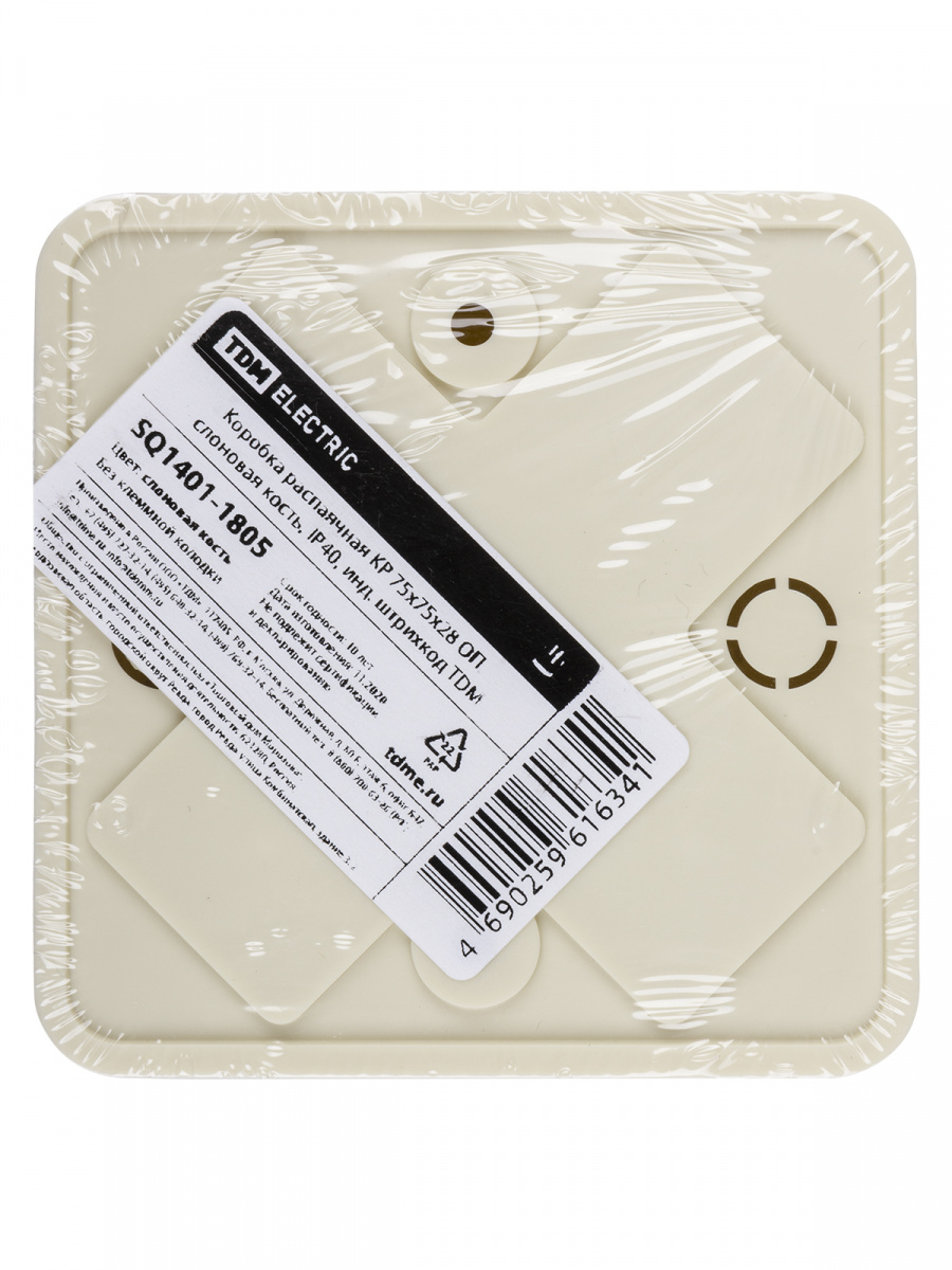- Коробка распаячная КР 75х75х28 ОП, сл. кость, IP40, инд. штрихкод TDM (80/80) (SQ1401-1805)