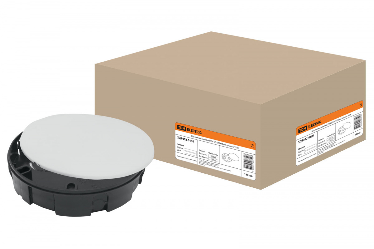 - Монтажная коробка У194 СП D75х15мм, крышка, TDM (1/120) (SQ1402-0194)