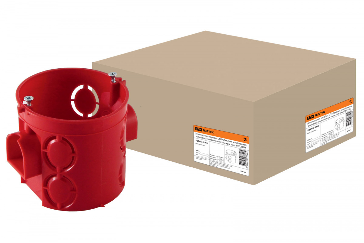 - Установочная коробка СП D68х62мм, углубленная, саморезы, стыковочные узлы, красная, IP20, TDM (1/200 (SQ1402-1106)