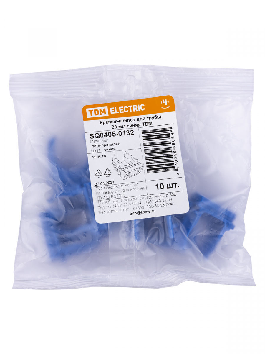 - Крепеж-клипса для трубы ПНД 20 мм (10 шт.) синяя TDM (1/10/1400) (SQ0405-0132)