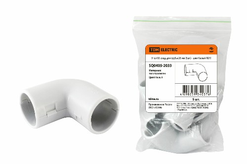- Угол 90 соединительный для трубы 25 мм (5шт) - цвет белый TDM (SQ0405-2033)