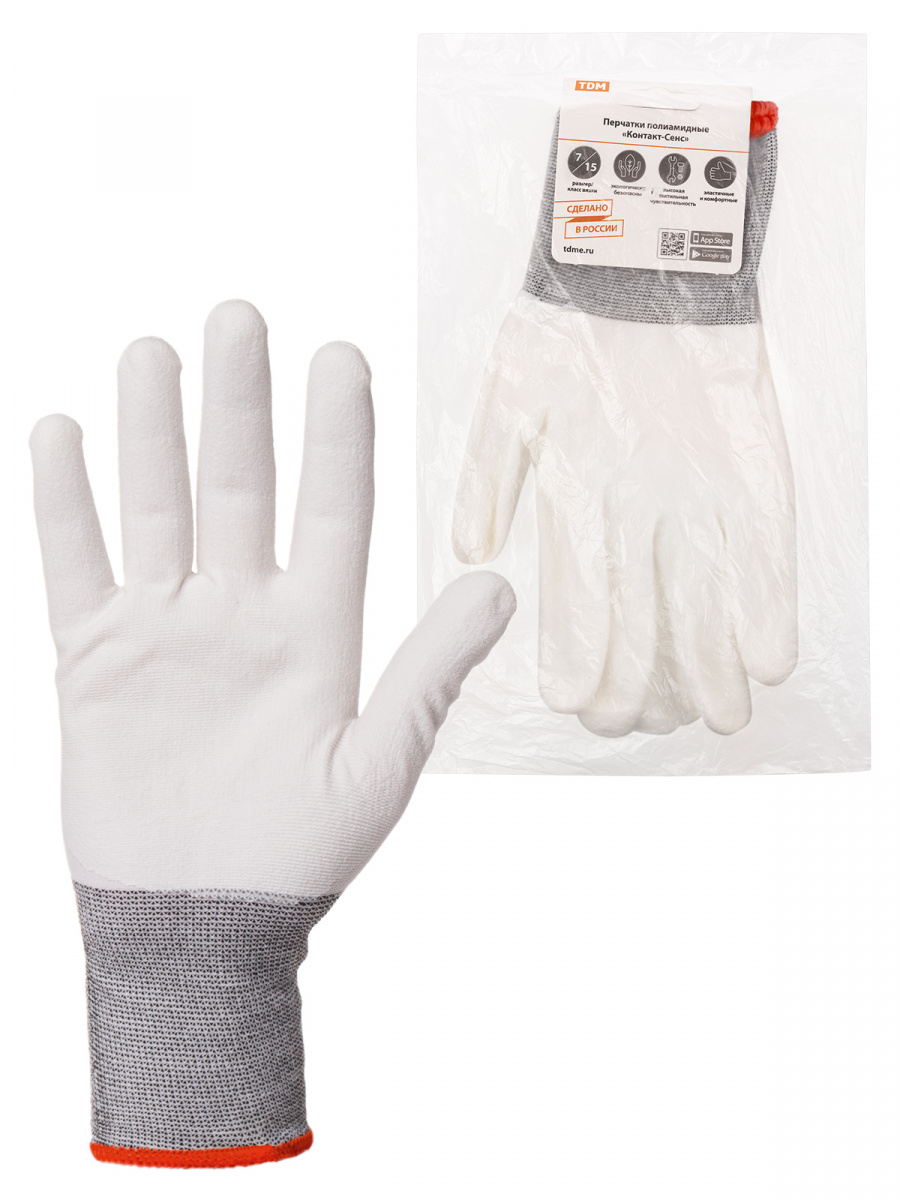 - Перчатки полиамидные "Контакт-Сенс", полиуретановое покрытие, 7, 15 кл., 24-26 г, 1 пара, TDM (1/250) (SQ1016-0310)