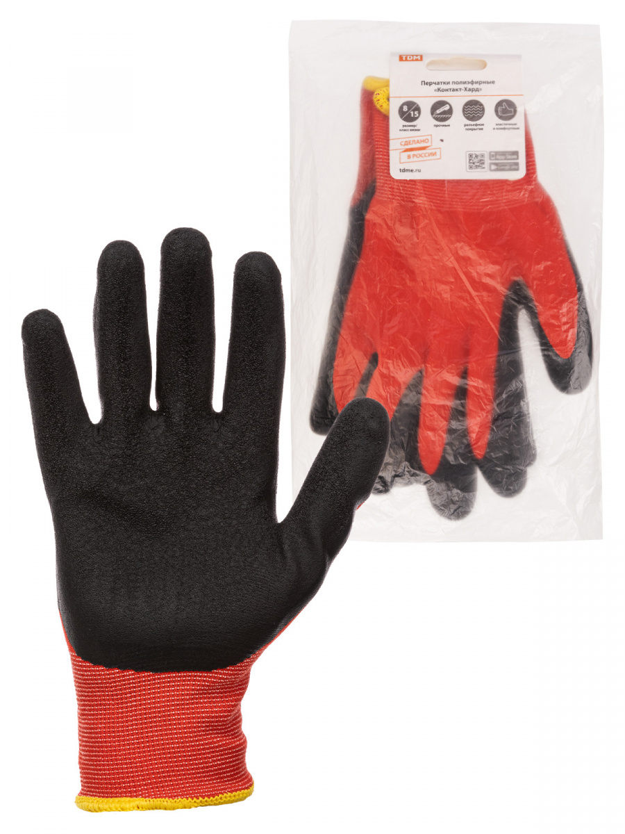 - Перчатки полиэфирные "Контакт-Хард", рельефное латексное покрытие, 8, 15 кл., 56-57 г, 1 пара, TDM (1/250) (SQ1016-0319)
