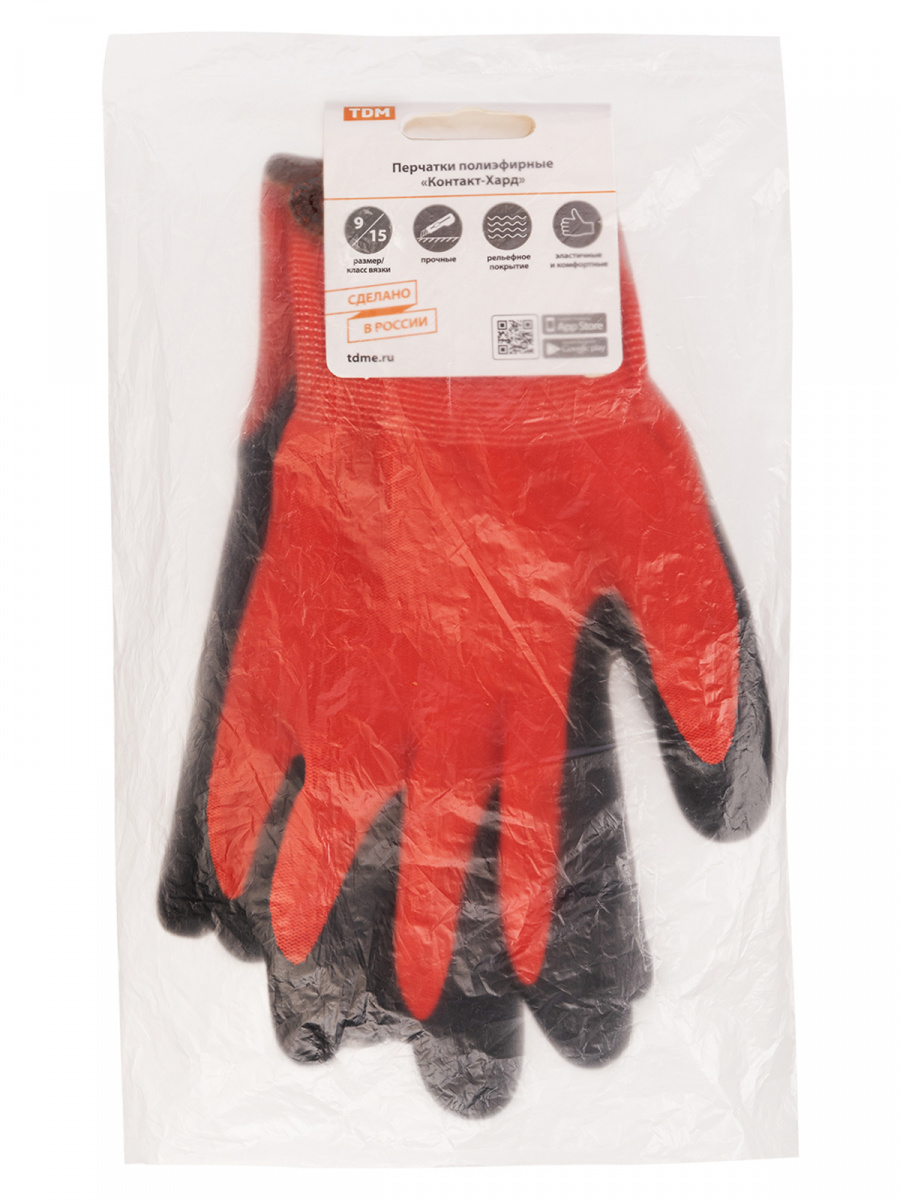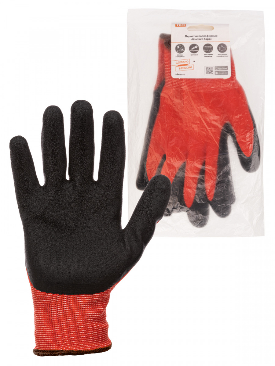 - Перчатки полиэфирные "Контакт-Хард", рельефное латексное покрытие,9, 15 кл., 59-61 г, 1 пара, TDM (1/250) (SQ1016-0320)