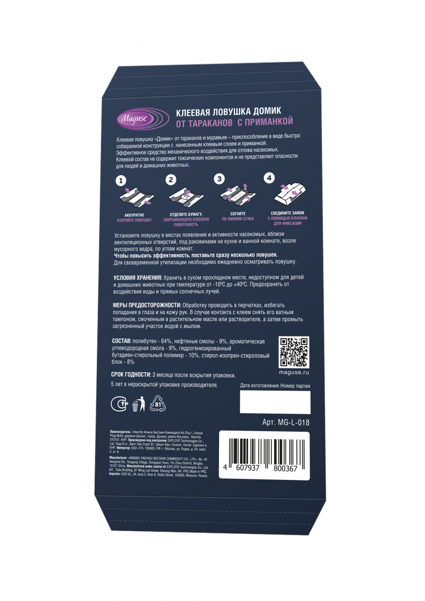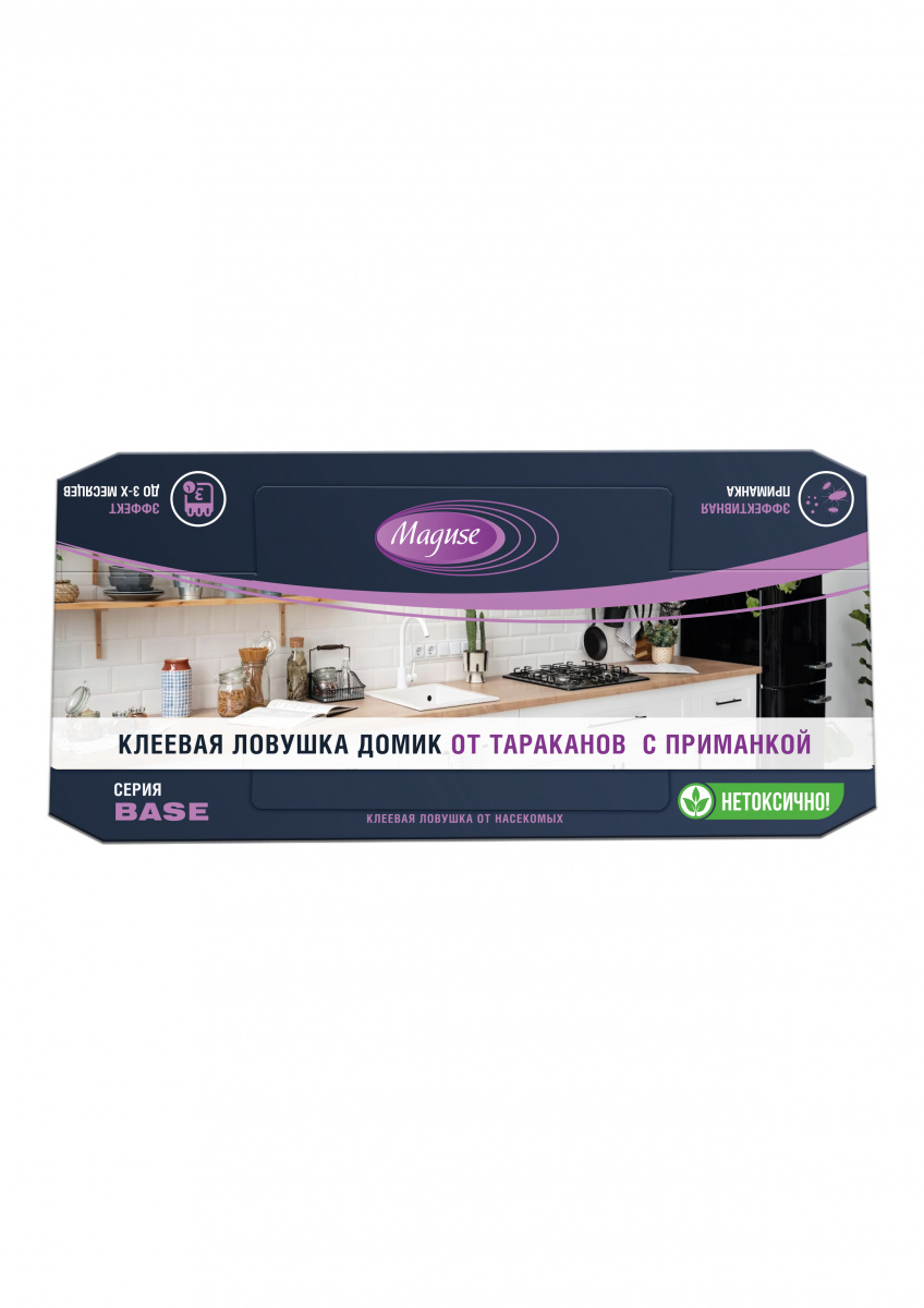 - Клеевая ловушка от тараканов домик 19,2х9см с приманкой серия Base (цена за набор из 5 шт в уп.) MAGUSE (1/120) MG-L-018