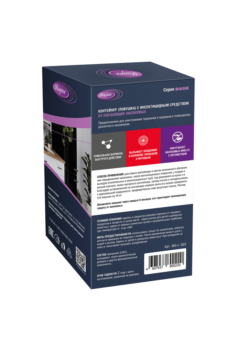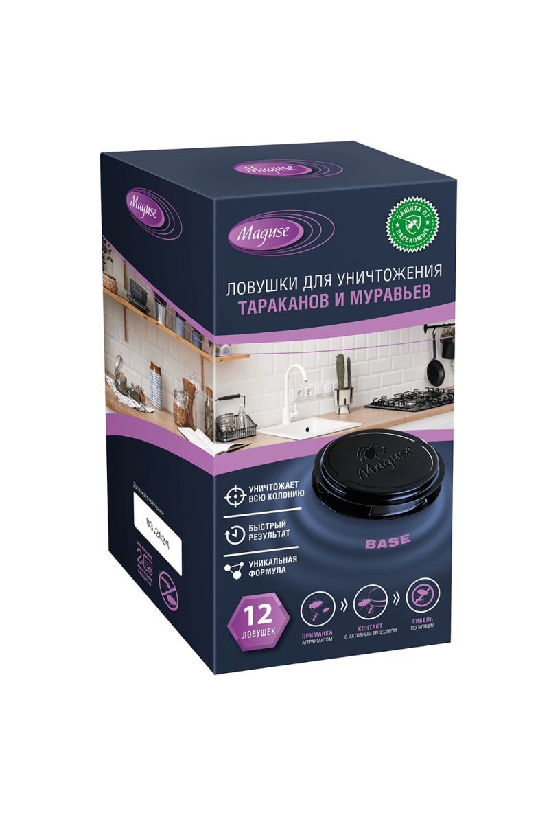 - Ловушка от тараканов и муравьев серия Base (цена за набор из 12 шт в уп.) MAGUSE (12/864) MG-L-003