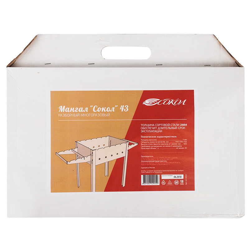 - Мангал разборный "СОКОЛ" 43 сталь толщиной 2мм, размер жаровни 50х30см (1/40) (62-0034)