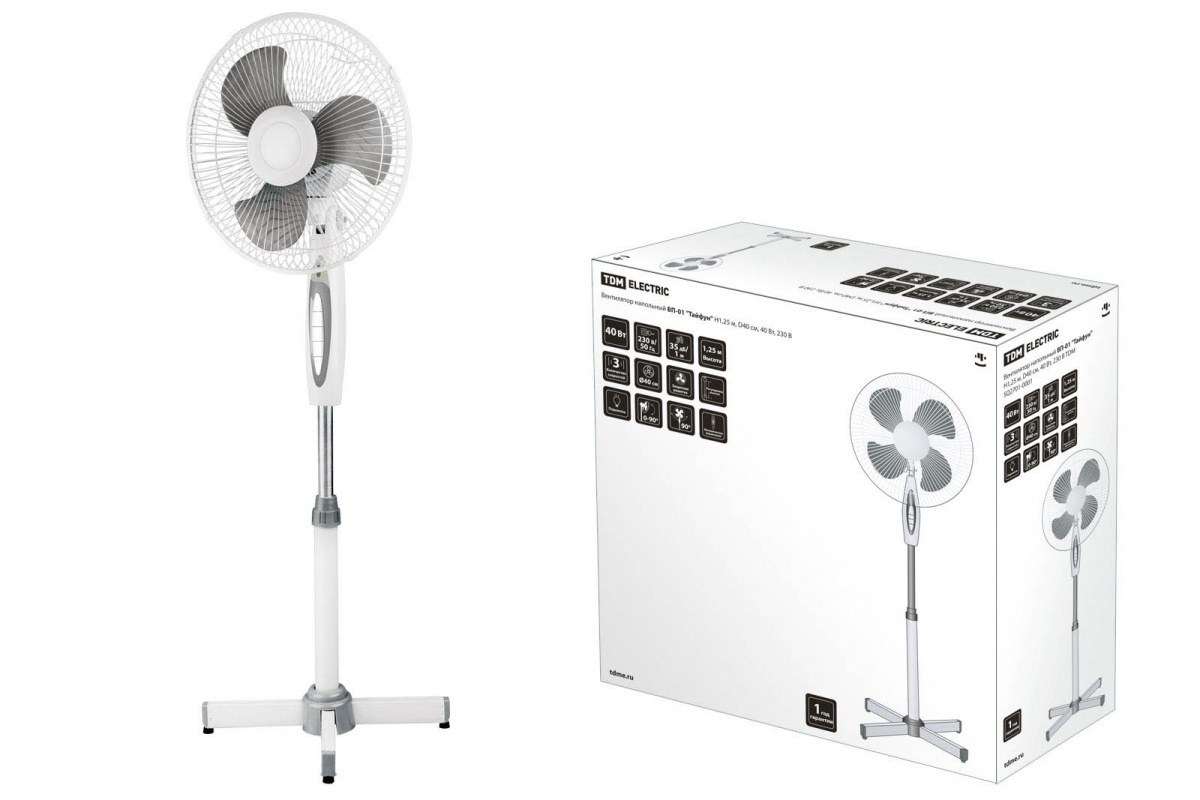 - Вентилятор напольный ВП-01 "Тайфун" H1,25 м, D40 см, 40 Вт, 230 В, серый, TDM (в одной общей коробке 2шт!!!) (2) (SQ2701-0001)