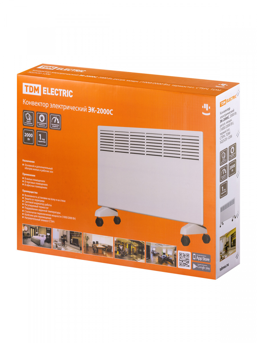 - Конвектор электрический ЭК-2000С, 2000 Вт, регул. мощн. (1000/2000 Вт), термостат, СТИЧ, TDM (1/1/1) (SQ2520-1206)